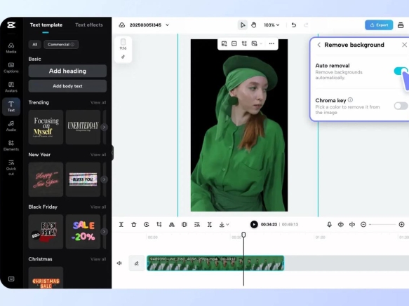 La edición de fondos se ha realizado tradicionalmente con software de edición complejo y con la necesidad de contar con habilidades humanas de edición. Hoy en día, los creadores pueden producir su propio video con IA, que detecta automáticamente al sujeto y elimina el entorno con un solo clic.