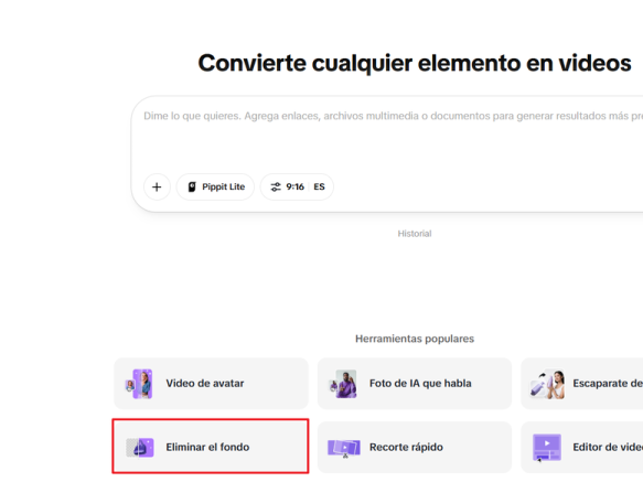Para comenzar el proceso de eliminación de fondo, simplemente inicia sesión en Pippit y prueba la versión gratuita. Ve a la sección "Generador de videos" y busca la opción "Eliminar el fondo" en la sección de herramientas populares. Esta función ayuda a iniciar el proceso de forma rápida y fluida.